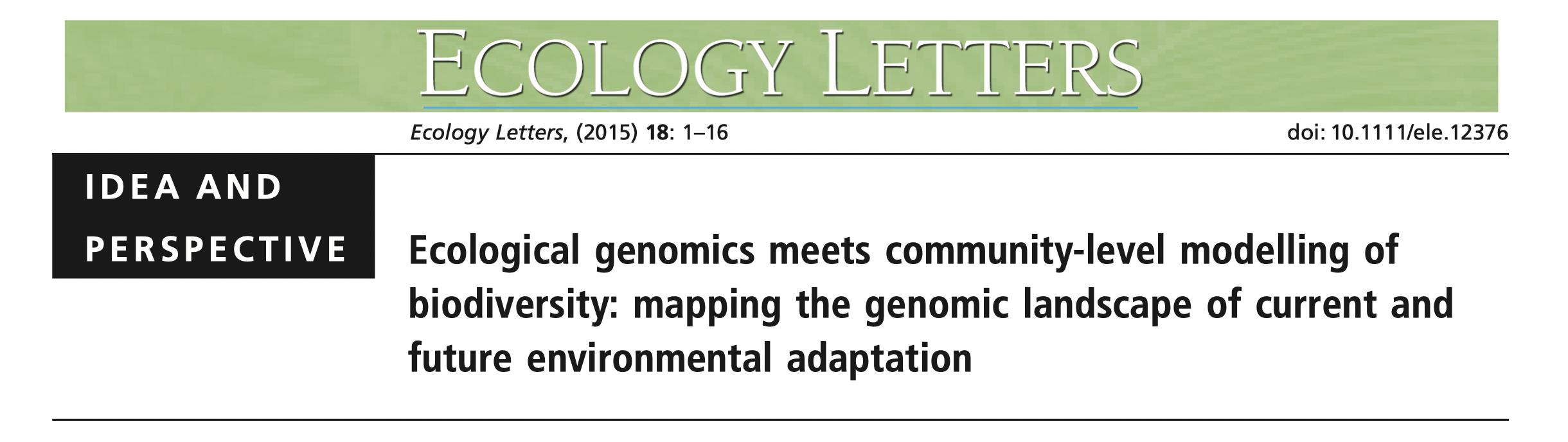 - Fitzpatrick, M. C., & Keller, S. R. (2015). Ecological genomics meets community-level modelling of biodiversity: mapping the genomic landscape of current and future environmental adaptation. _Ecol Lett, 18_(1), 1-16.