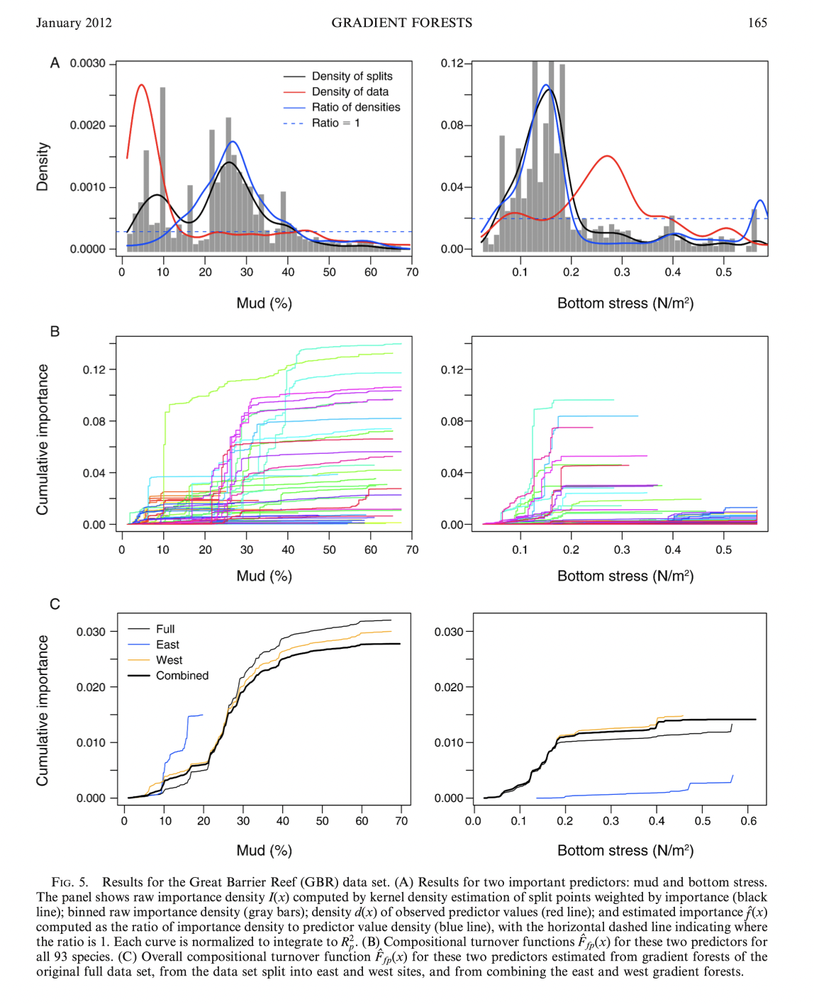 - Ellis, N., Smith, S. J., & Pitcher, C. R. (2012). Gradient forests: calculating importance gradients on physical predictors. _Ecology, 93_(1), 156-168.