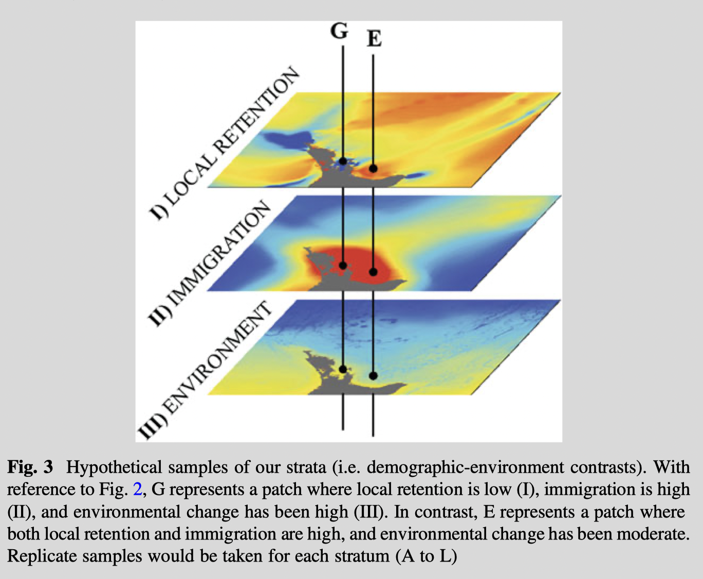 Riginos, C., Crandall, E. D., Liggins, L., Bongaerts, P., & Treml, E. A. (2016). Navigating the currents of seascape genomics: how spatial analyses can augment population genomic studies. Current Zoology, 62(6), 581-601.