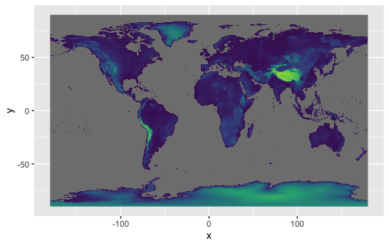 geom_raster(data = elevation, aes(x = x, y = y, fill = SWE_elv_msk), show.legend = FALSE) +
